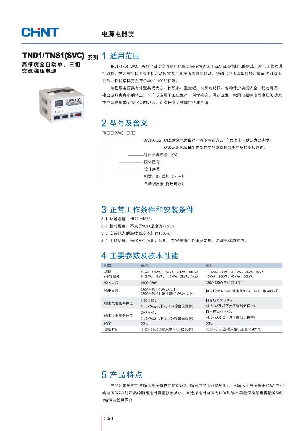 TNS1(SVC)-60/AF,系列全自动交流稳压电源,正泰集团CHINT国内一级代理