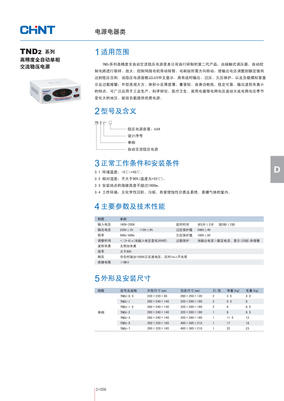 TND2-2,TND2系列高精度全自动交流稳压电源,正泰集团CHINT国内一级代理