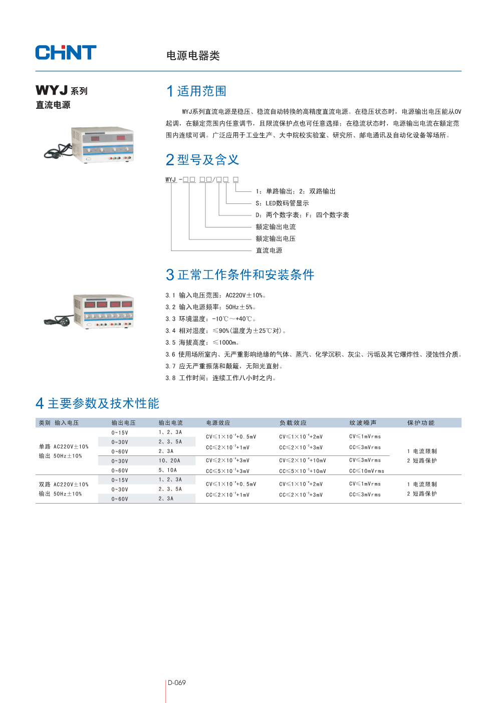 WYJ-6002/DS2,WYJ系列直流电源,正泰集团CHINT国内一级代理