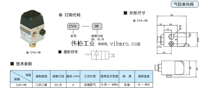 产品标题:CVA-06,STNC气动控制元件,气控单向阀